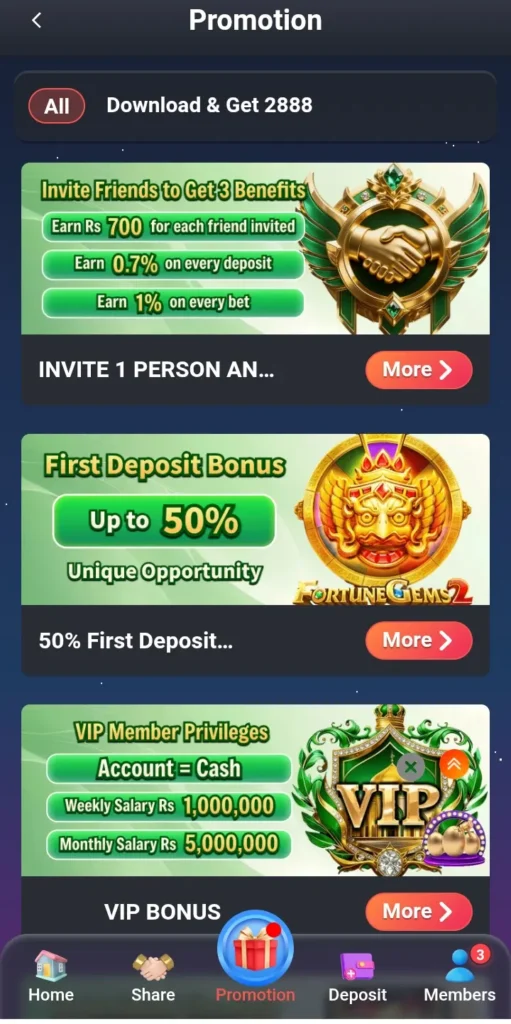 The 2888 game includes social elements. You can earn referral bonuses by inviting your friends to join. Some games allow players to interact with each other, which creates a more thrilling experience. Sharing tips with friends helps you to become a better player.