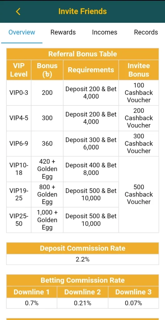 - Requirement: Invitee must deposit PKR 200 and bet PKR 4,000